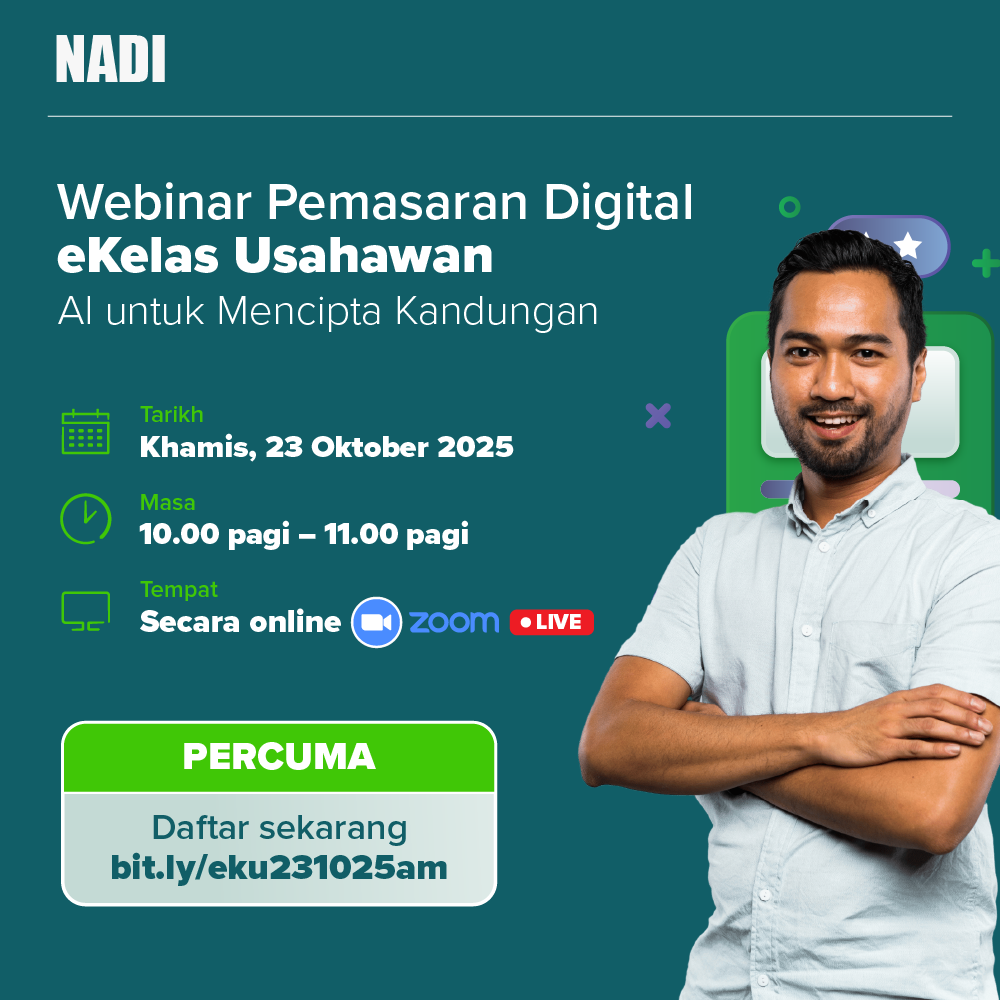 Jom tingkatkan kemahiran digital anda bersama siri Webinar Pemasaran Digital Usahawan anjuran NADI Pekan Belaga — percuma & online! 🚀
