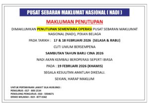 📢 Pemaklumam Penutupan sementara NADI Pekan Belaga bersempena dengan Tahun Baru Cina pada 17 & 18 Februari 2026 (Selasa & Rabu).