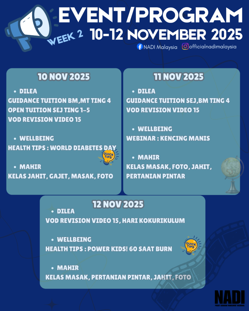 โจ Jom sertai pelbagai program menarik NADI Malaysia minggu ini! ๐