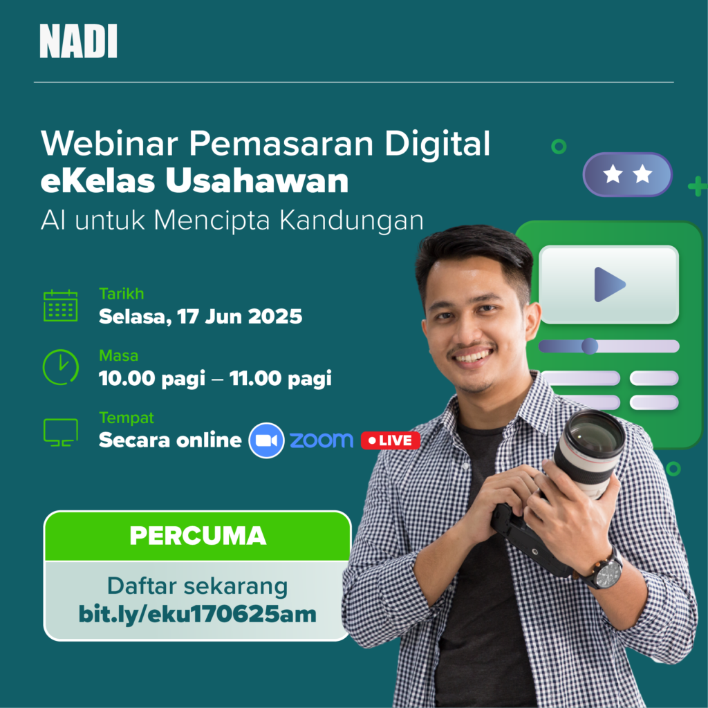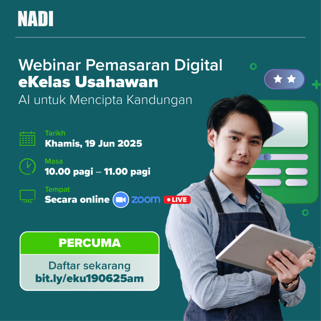 NADINurture #eKelasUsahawan #WebinarPercuma #AIuntukBisnes #PemasaranDigital #UsahawanBijak #BelajarOnline #DigitalEntrepreneurship
